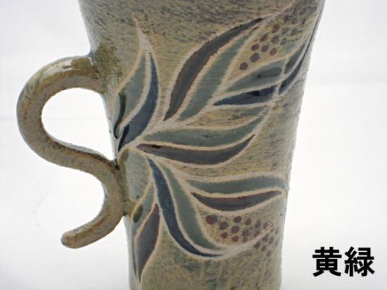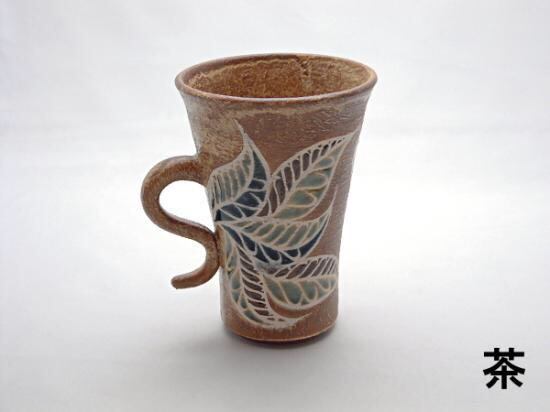 『マグカップ』(クロトン・青、茶)(月桃・黄緑) ~ 榕原陶房(がじゅばるとうぼう)~ 仲村実 作